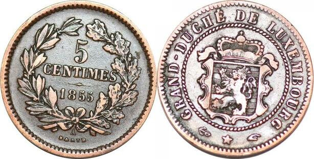 P0181 Luxembourg 5 Centimes Willem III 1855 A Paris KM#22.2 -> Make offer