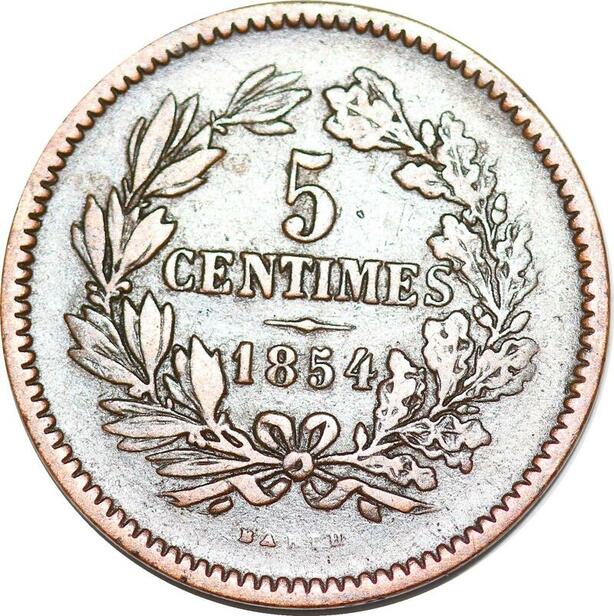 P0182 Luxembourg 5 Centimes Willem III 1854 Bruxelles Utrecht KM#22.1