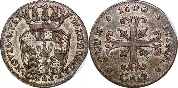 P0223 Schweiz Neuenburg 1/2 Batzen 2 Kreuzer Friedrich III 1800 AU