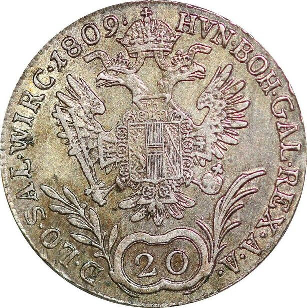 P0227 Austria Habsburg 20 Kreuzer Franz I 1809 B Silver AU -> Make offer