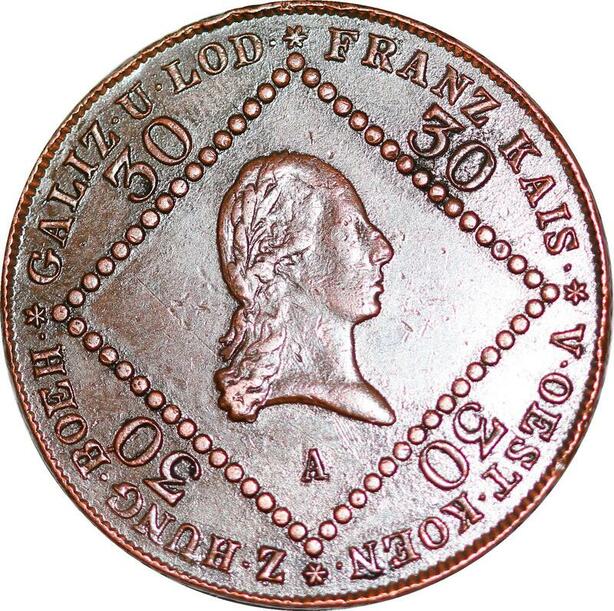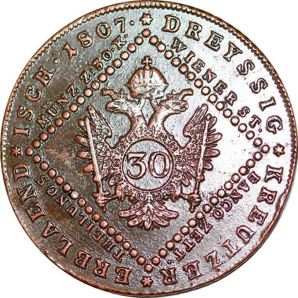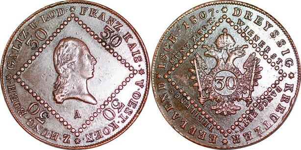P0229 Austria Habsburg 30 Kreuzer Franz II 1807 A Wien AU !! -> Make offer