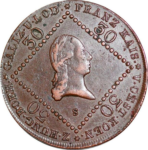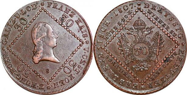P0230 Scarce Austria Habsburg 30 Kreuzer Franz II 1807 S Schmöllnitz AU