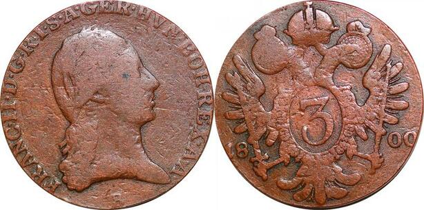 P0243 Austria Habsburg 3 Kreuzer Franz II 1800 B Kremnica -> Make offer