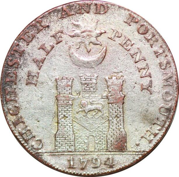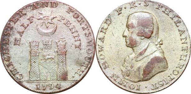 P0288 Token United Kingdom 1/2 Penny Hampshire Portsmouth John Howard 1794 Silvered