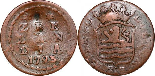 P0291 Dutch Republic Netherlands Duit Zee Lan Dia 1792 = Make offer