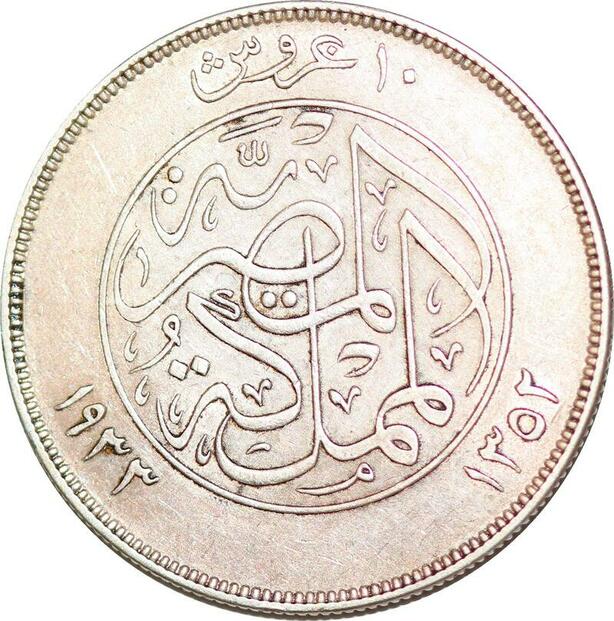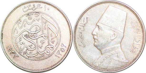 P0316 Scarce Egypt 10 Piastres Fuad I AH 1352 1933 silver AU -> Make offer
