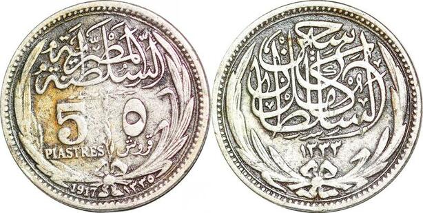 P0322 Egypt 5 Piastres Qirsh Hussein Kamel AH 1335 1917 silver -> Make offer