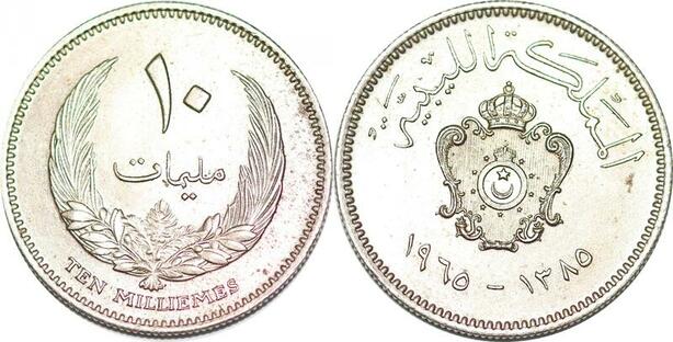P0332 Libya 10 Milliemes Idris I AH 1385 1965 UNC -> Make offer