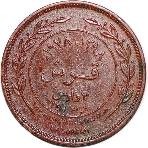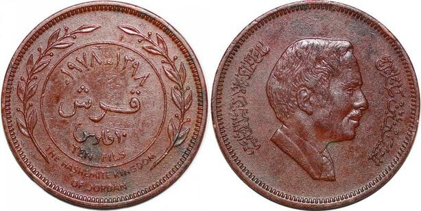 P0339 Jordan Qirsh 10 Fils Hussein AH 1398 1978 -> Make offer
