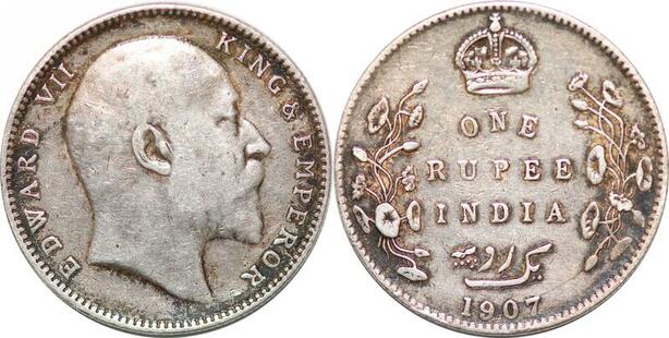 P0366 India British Rupee Edward VII 1907 Bombay Type C Silver -> Make offer