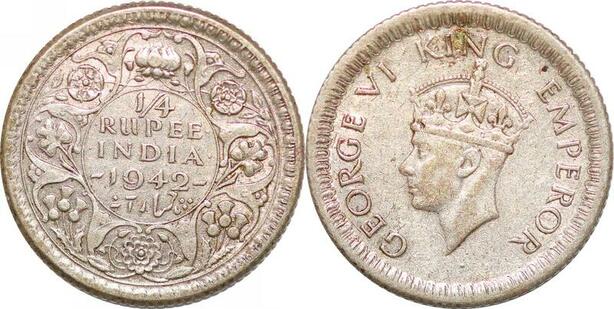 P0367 India British 1/4 Rupee George VI 1942 Calcutta Silver -> Make offer