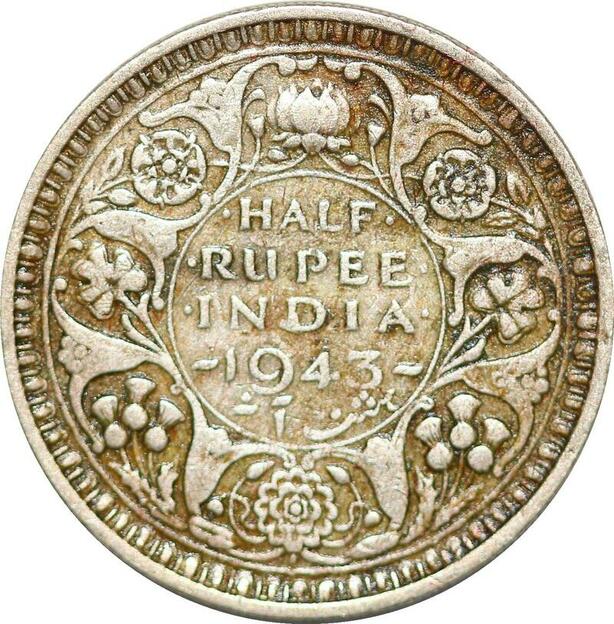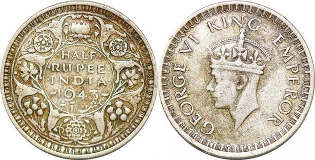 P0368 India British 1/2 Half Rupee George VI 1943 . Silver -> Make offer