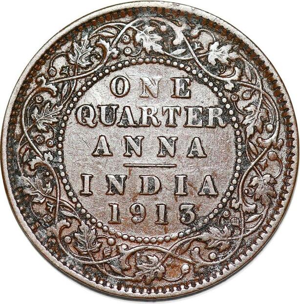 P0372 India British 1/4 Anna George V 1913 Calcutta -> Make offer