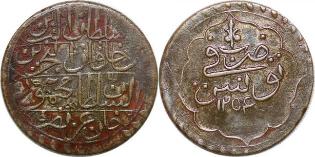 P0396 Rare Tunisia Piastre Rial Mahmud II 1254 1838 Silver AU !!! -> Make offer