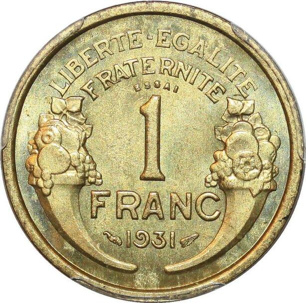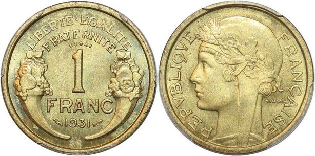 P0427 Rare France 1 Franc Essai Morlon 1931 PCGS SP65 -> Make offer