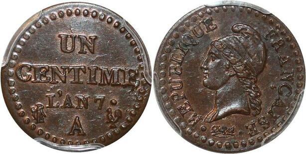 P0433 Rare 1 Centime Dupré An 7 A PCGS MS63 Splendide ->Make offer