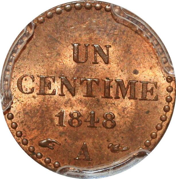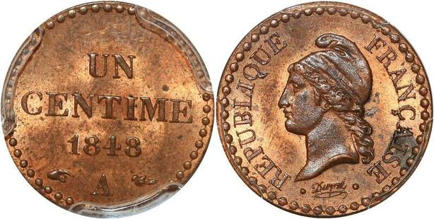 P0434 Rare France 1 Centime Dupré 1848 A PCGS MS63 Splendide -> Make offer