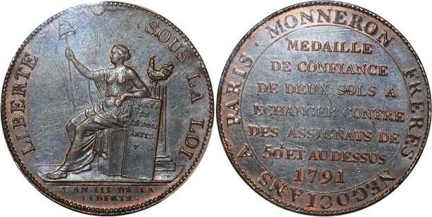 P0439 France 2 Sols Monneron an 3 liberté 1791 PCGS AU58 Superbe -> Make offer