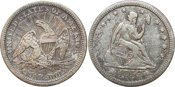 P0442 United States Quater Dollar Liberty Seated 1853 Silver ->M offer