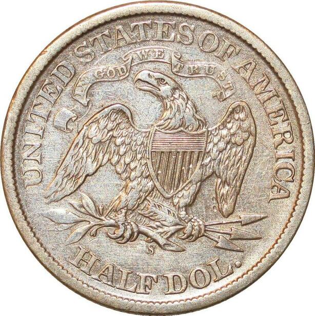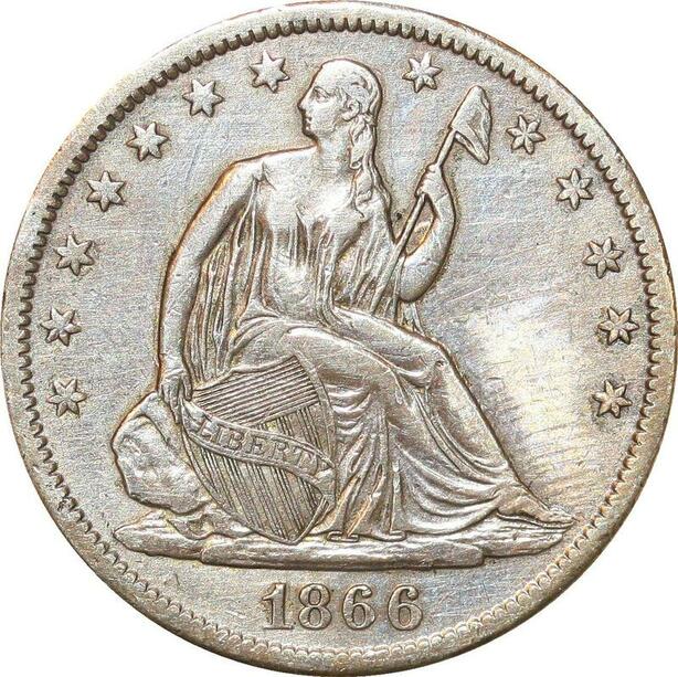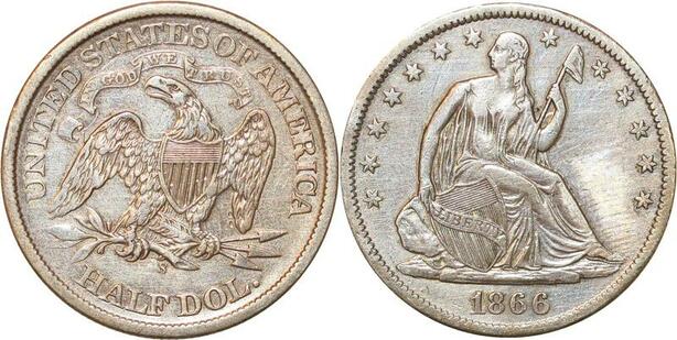 P0444 Scarce United States Half Dollar Liberty Seated 1866 S Silver AU