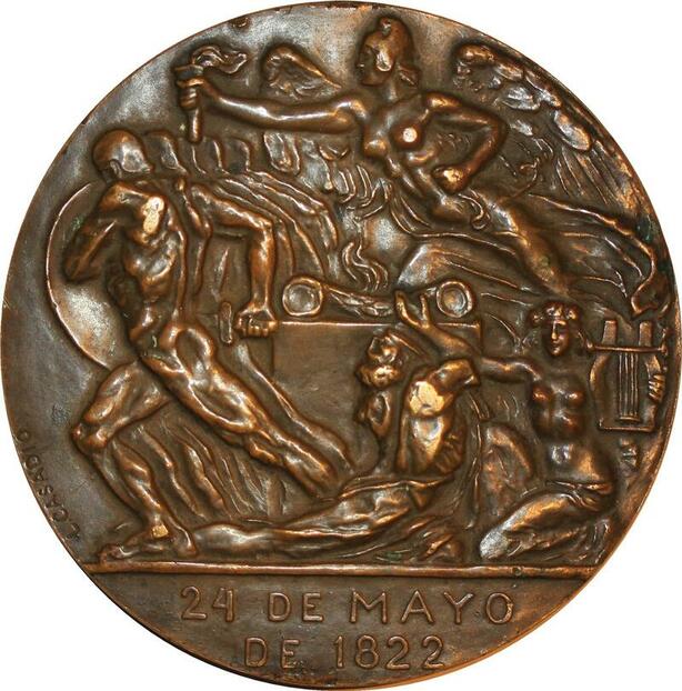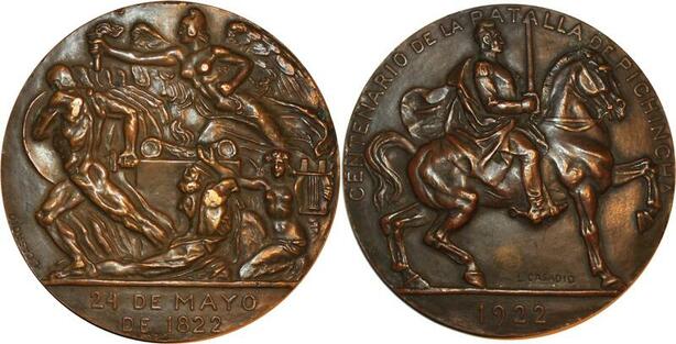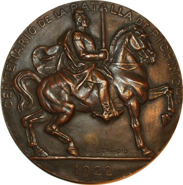 P0486 Rare Medal Ecuador Batalla Pichincha Cavalier 1822 1922 Casadia AU SUP