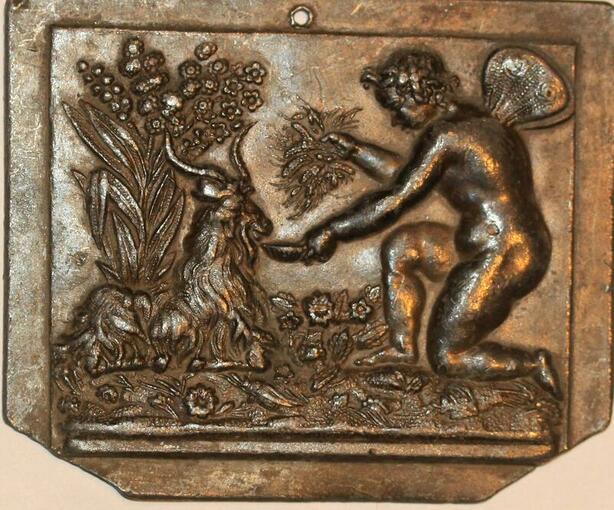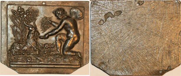 P0494 Rare France Plaque Art Deco Scène Nature Ange Zebu SUP