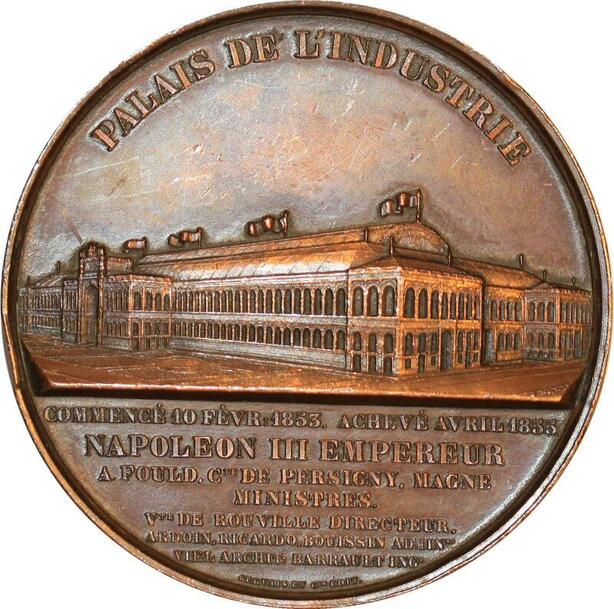 P0504 Rare France Médaille Napoléon III Empereur Palais Industrie 1855 Oudiné Wien SUP