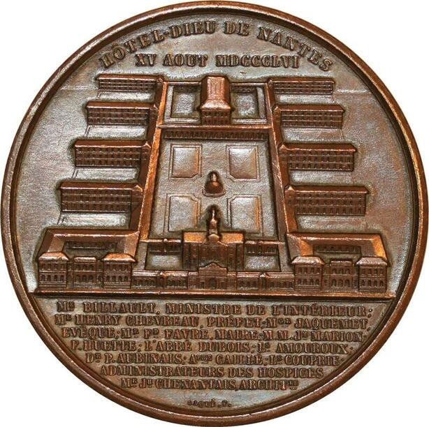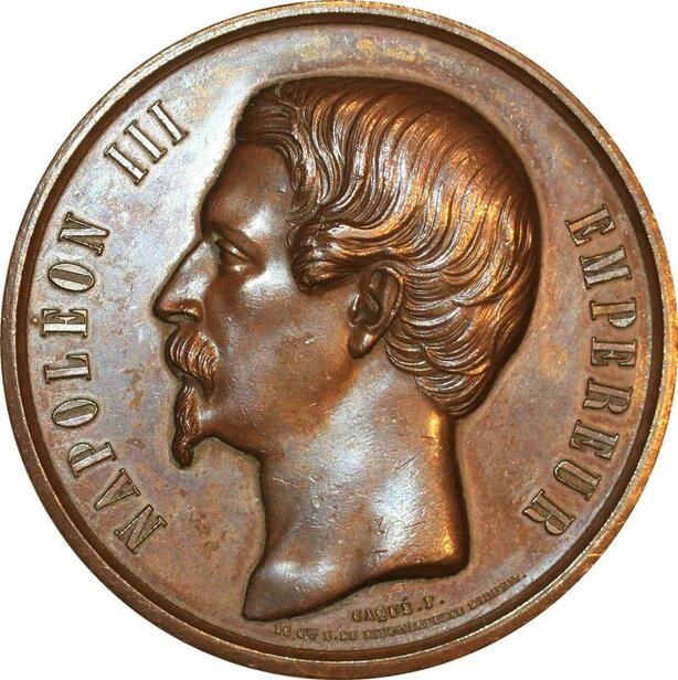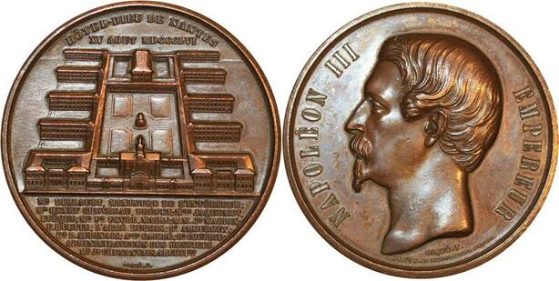 P0506 Rare France Médaille Napoleon III Empereur Hotel Dieu de Nantes 1856 Caqué SUP