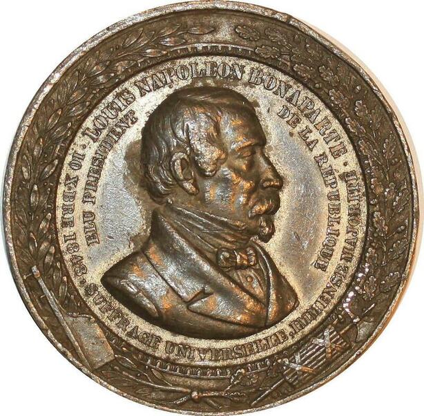 P0522 Rare France Médaille Louis Napoléon Bonaparte Election Suffrage Universel SUP
