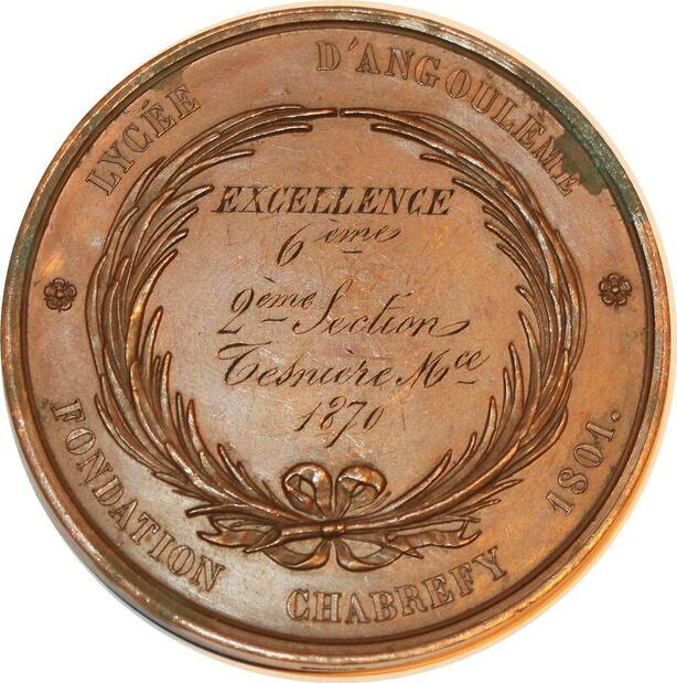 P0541 France Médaille Lycée d'Angoulème Tesnières Chabrefy 1870 Brenet ->F offre