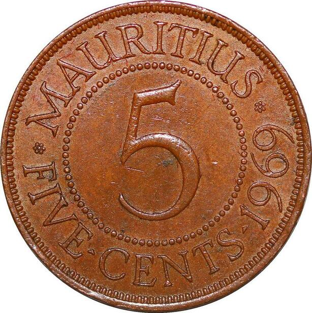 P0587 Mauritius Ile Maurice 5 Cents Elizabeth II 1969 AU SUP ->Faire offre
