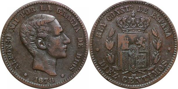 P0606 Spain 10 Centimos Alfonso XII 1878 OM Barcelona ->Make offer