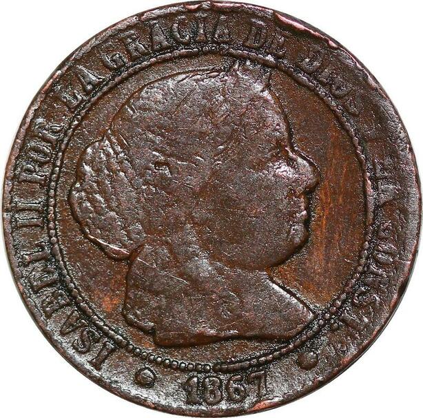 P0610 Spain 2 1/2 Céntimos Escudo 1867 Barcelona O.M ->Make offer