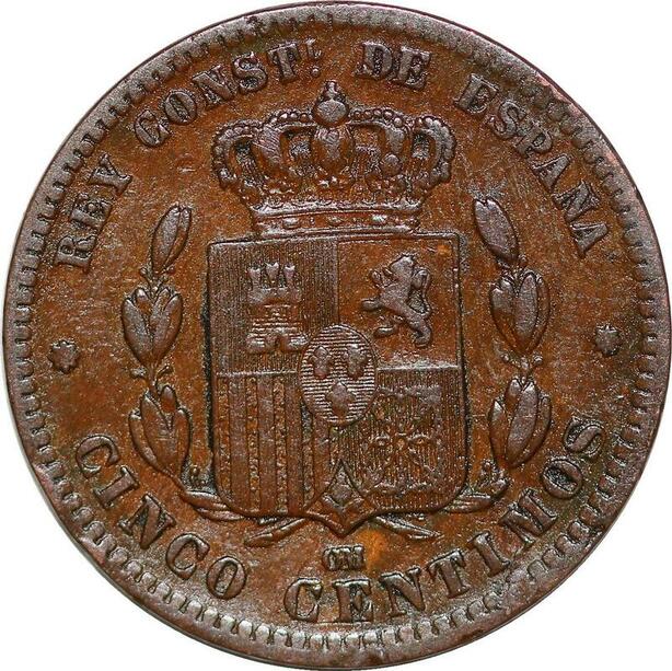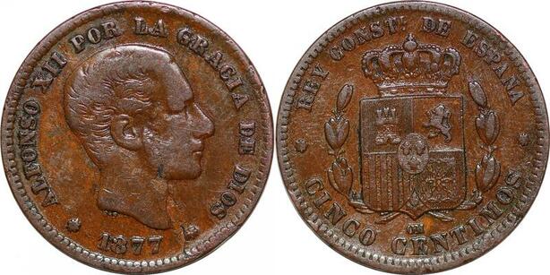 P0612 Spain 5 Centimos Alfonso XII 1877 OM Barcelona ->Faire offre