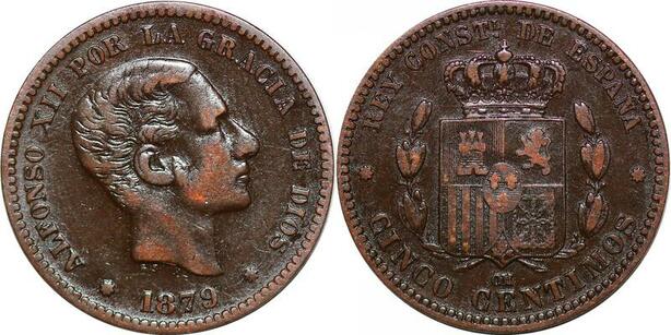 P0618 Spain 5 Centimos Alfonso XII 1879 OM Barcelona ->Faire offre