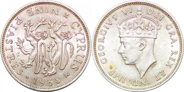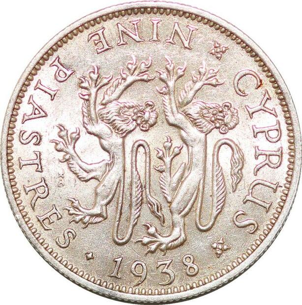 P0634 Cyprus 9 Piastres George E. Kruger-Gray 1938 Silver AU ->Make offer