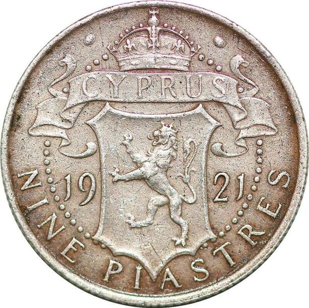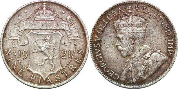 P0636 Cyprus 9 Piastres George V 1921 Silver ->Make offer