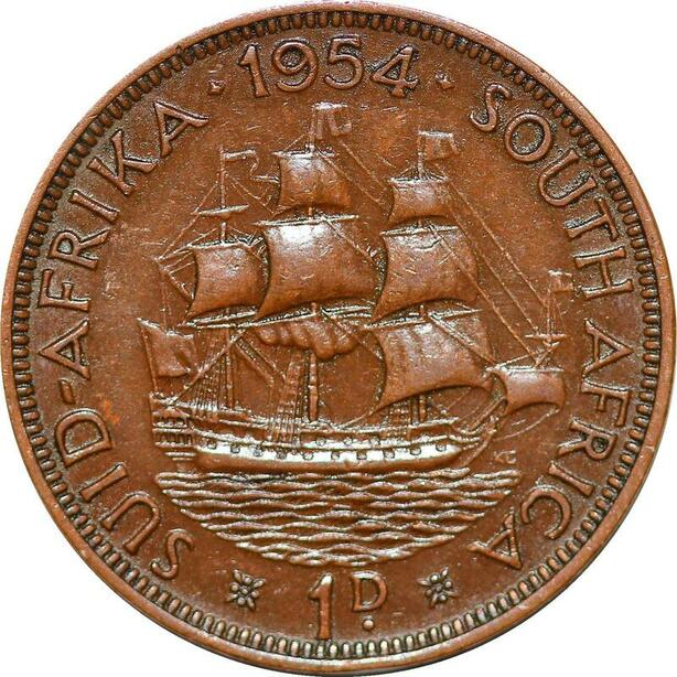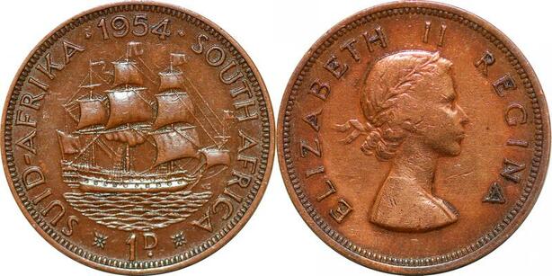 P0653 South Africa Penny Elizabeth II Sailing ship 1954 ->Make offer