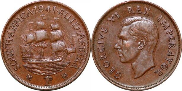 P0654 South Africa Penny George VI Sailing ship 1941 ->Make offer