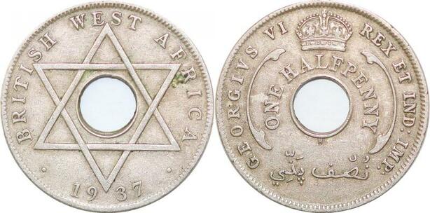 P0664 Ethiopia British West Africa 1/2 Penny George VI 1937 ->Make offer