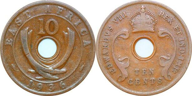 P0665 Ethiopia East Africa 10 Cents Edward VIII 1936 ->Make offer