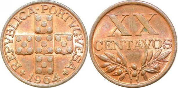 P0680 Portugal 20 Centavos 1964 FDC BU UNC -> Make Offer