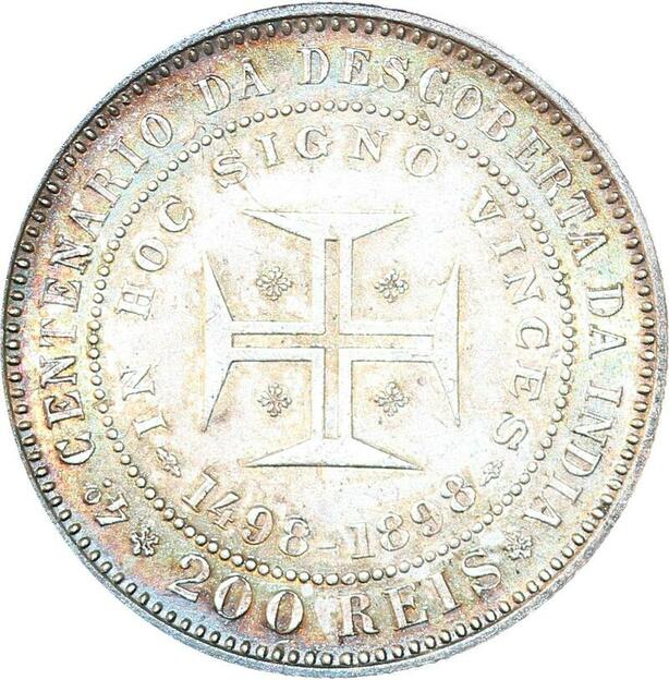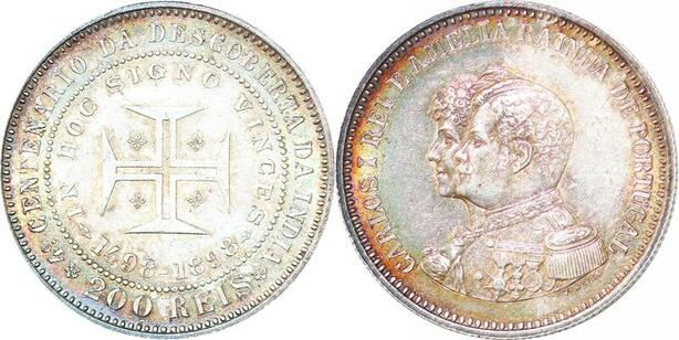 P0693 Scarce Portugal 200 Réis Carlos I 400 years discovery of India 1500 1558 UNC