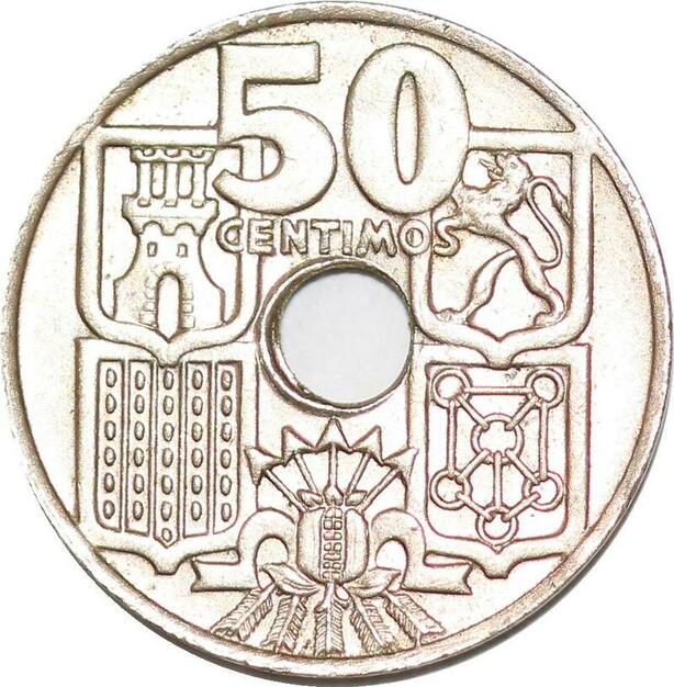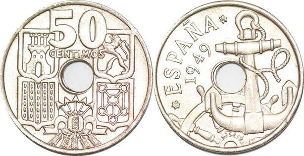 P0723 Spain 50 Centimos Anchor Helm 1949 UNC ->Make offer