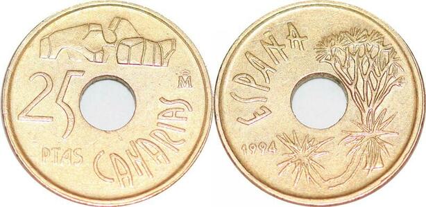 P0735 Spain 25 Pesetas Canary Islands Commemorative 1994 UNC ->Make offer