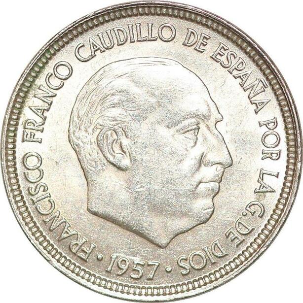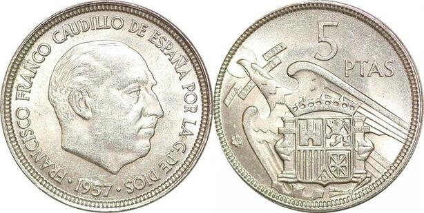 P0740 Spain 5 Pesetas Francisco Franco 1957 UNC ->Make offer