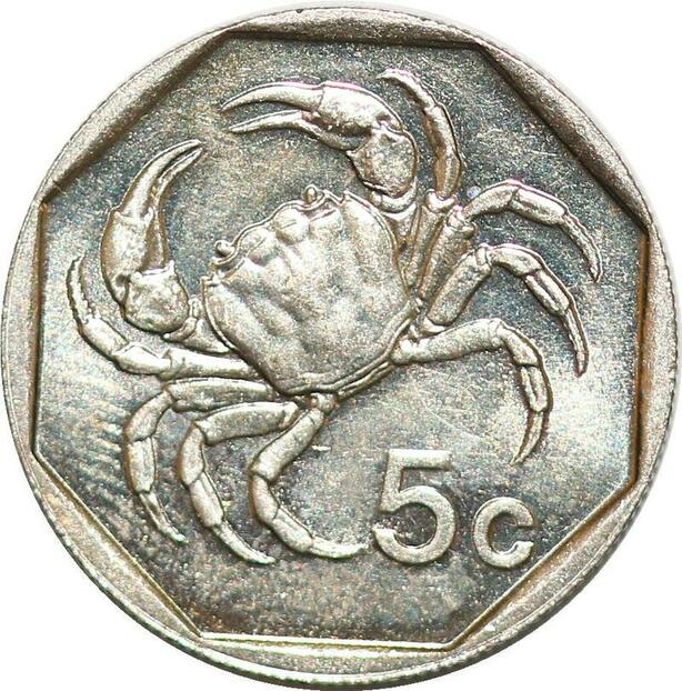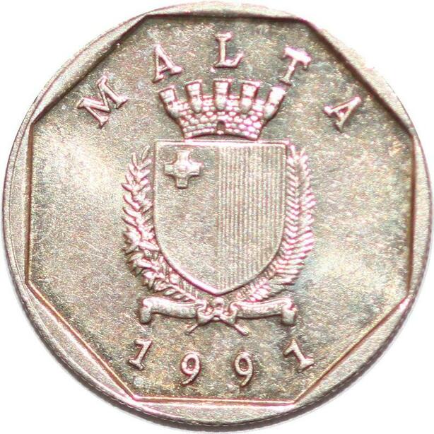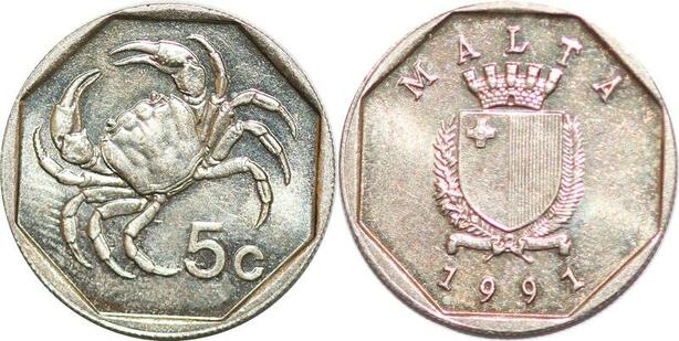 P0745 Malta 5 Cents Coat Arms Crab 1991 UNC ->Make offer