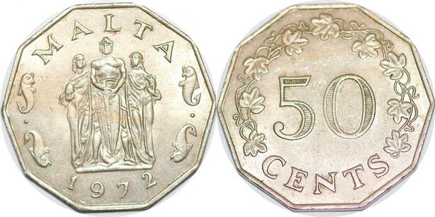 P0750 Malta 50 Cents Great Siege Monument 1972 UNC ->Make offer