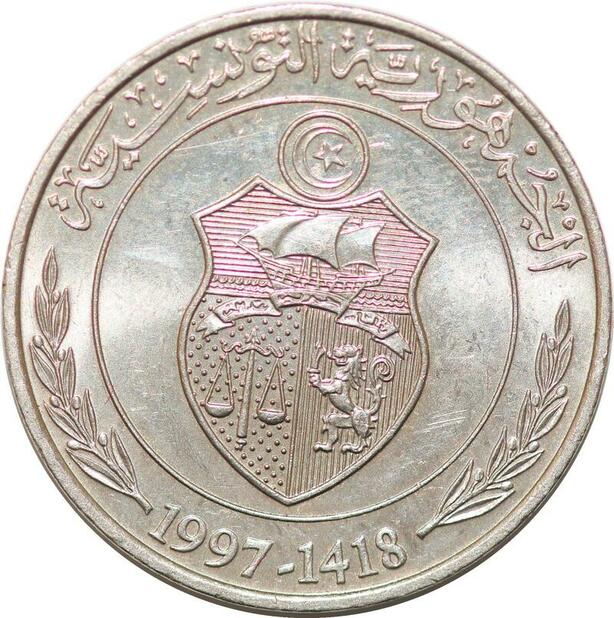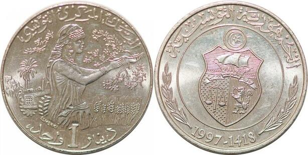 P0773 Tunisia 1 Dinar Fao Coat Arms 1418 1997 UNC ->Make offer