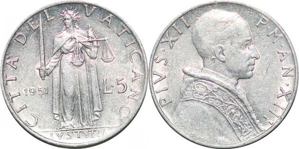 P0792 Papal States Vatican 5 Lire Pape Pie XII 1951 FDC -> Make offer